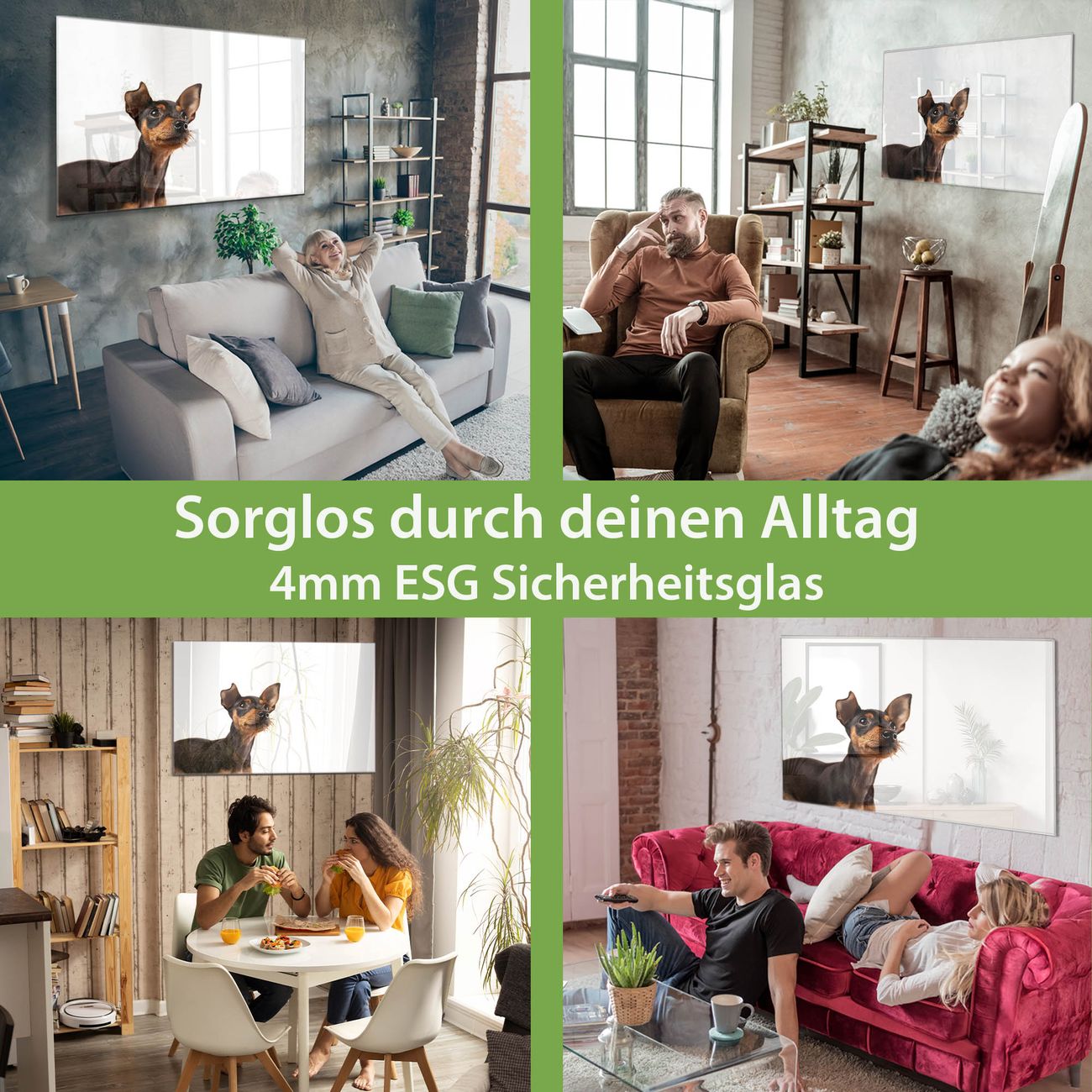 - Material: 4mm Sicherheitsglas mit Metallrückwand