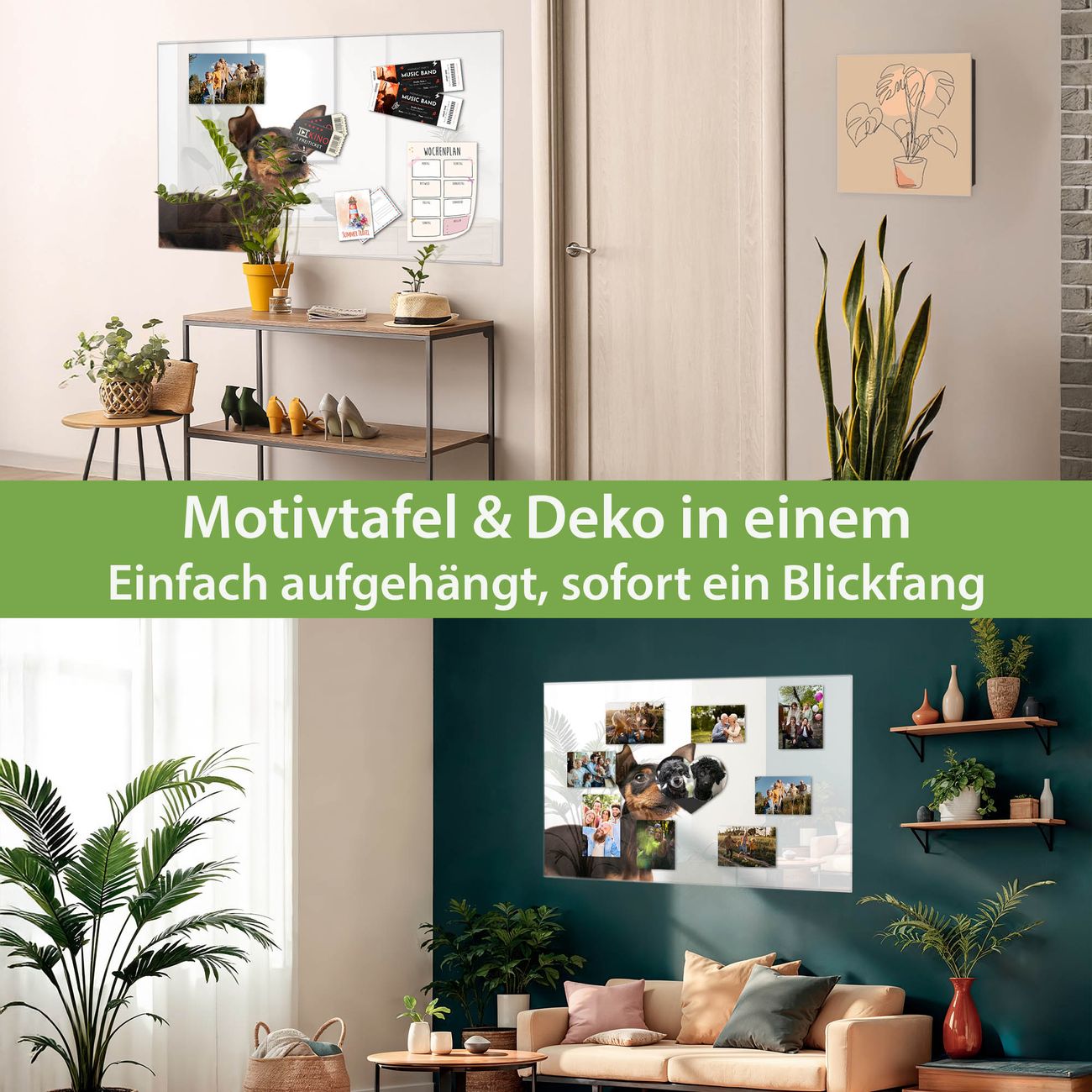 Auf der glatten Glasoberfläche lassen sich Termine, Rezepte oder Notizen ganz einfach mit Kreidestiften festhalten und rückstandslos entfernen. Starke Neodym-Magnete halten Ihre wichtigsten Erinnerungen sicher an Ort und Stelle. So entsteht Ihre ganz persönliche Ideenwand - jeden Tag neu.