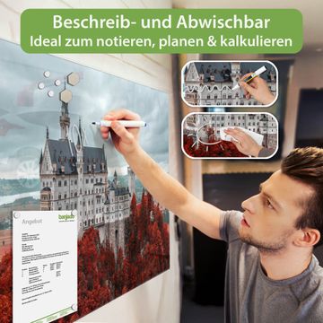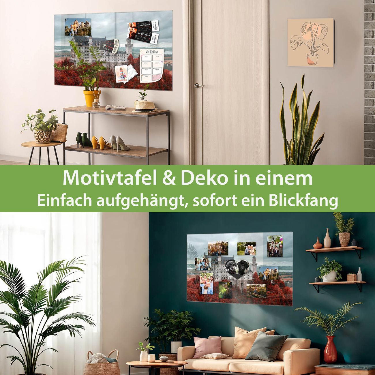 Die banjado Glas Magnettafel mit dem Motiv Motiv Neuschwanstein verbindet Funktionalität mit Stil. Sie ersetzt das Zettelchaos durch klare Strukturen und bringt dabei eine warme, natürliche Atmosphäre in Ihr Zuhause. Ob im Büro, in der Küche oder im Eingangsbereich - dieses Design-Board zieht Blicke an und sorgt für Ordnung mit Charakter.
