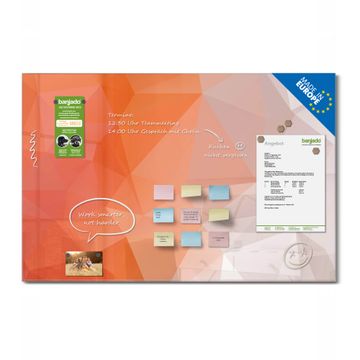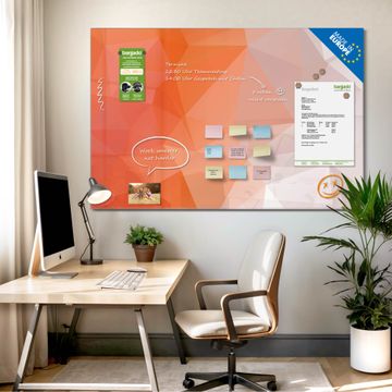 Glas Magnettafel im Querformat Motiv Orange Polygon