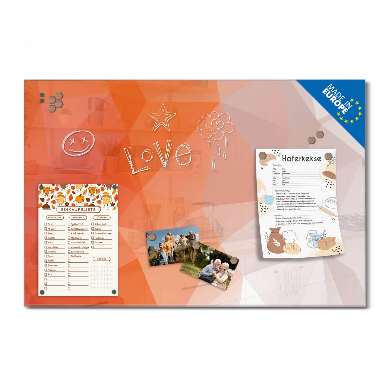 Glas Magnettafel im Querformat Motiv Orange Polygon