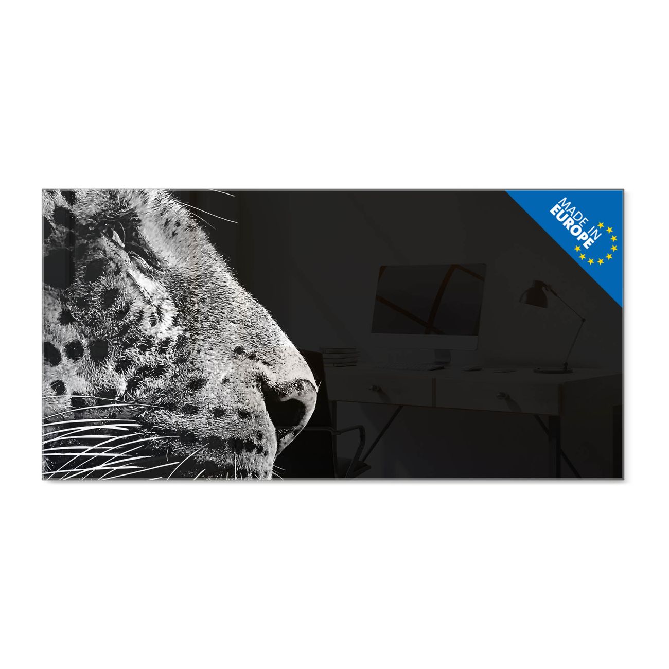- Material: 4mm Sicherheitsglas mit Metallrückwand
