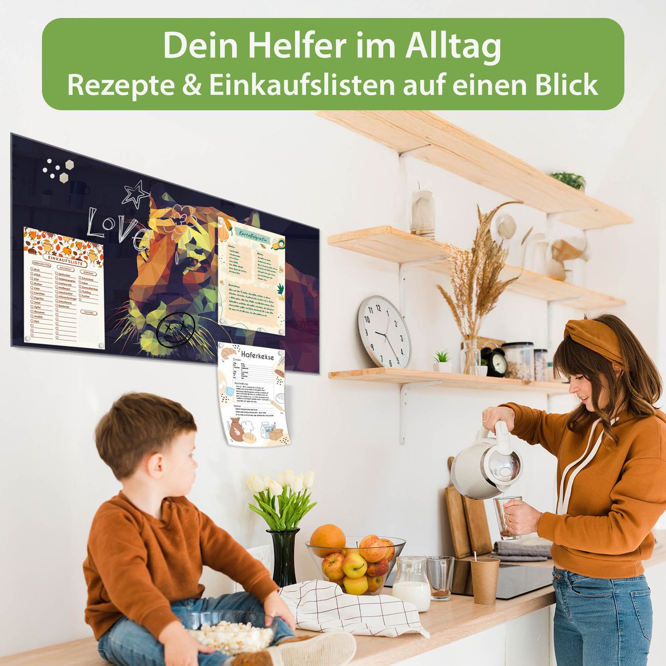 Ein Stück Design, das Ihren Alltag organisiert. Schreiben, heften, inspirieren - alles an einem Ort. Qualität, die man spürt. Montage leicht gemacht. Handwerk mit Herz - veredelt in Sachsen. Einzigartiges Design mit Motiv Motiv Polygon Tiger Beschreibbare Glasoberfläche, leicht zu reinigen Starke Magnetkraft durch Stahlrückwand Inklusive 4 Neodym-Magneten Flexible Montageoptionen Handveredelt in Sachsen - Qualität, die bleibt
