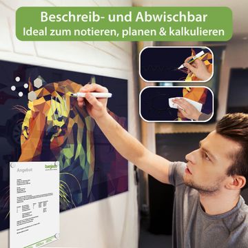Die banjado Glas Magnettafel mit dem Motiv Motiv Polygon Tiger verbindet Funktionalität mit Stil. Sie ersetzt das Zettelchaos durch klare Strukturen und bringt dabei eine warme, natürliche Atmosphäre in Ihr Zuhause. Ob im Büro, in der Küche oder im Eingangsbereich - dieses Design-Board zieht Blicke an und sorgt für Ordnung mit Charakter.