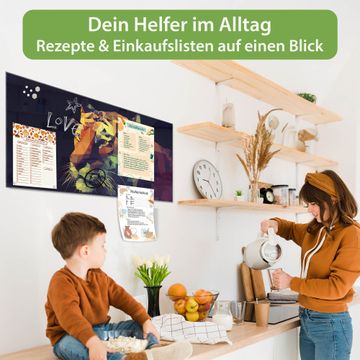 Auf der glatten Glasoberfläche lassen sich Termine, Rezepte oder Notizen ganz einfach mit Kreidestiften festhalten und rückstandslos entfernen. Starke Neodym-Magnete halten Ihre wichtigsten Erinnerungen sicher an Ort und Stelle. So entsteht Ihre ganz persönliche Ideenwand - jeden Tag neu.