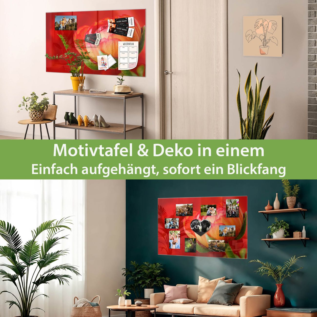 Dank der flachen Bauweise wirkt die Magnetwand fast schwebend an der Wand. Sie können sie mit Montagekleber elegant befestigen oder mit einem passenden Set klassisch verschrauben - beides sorgt für sicheren Halt und eine dezente Optik.