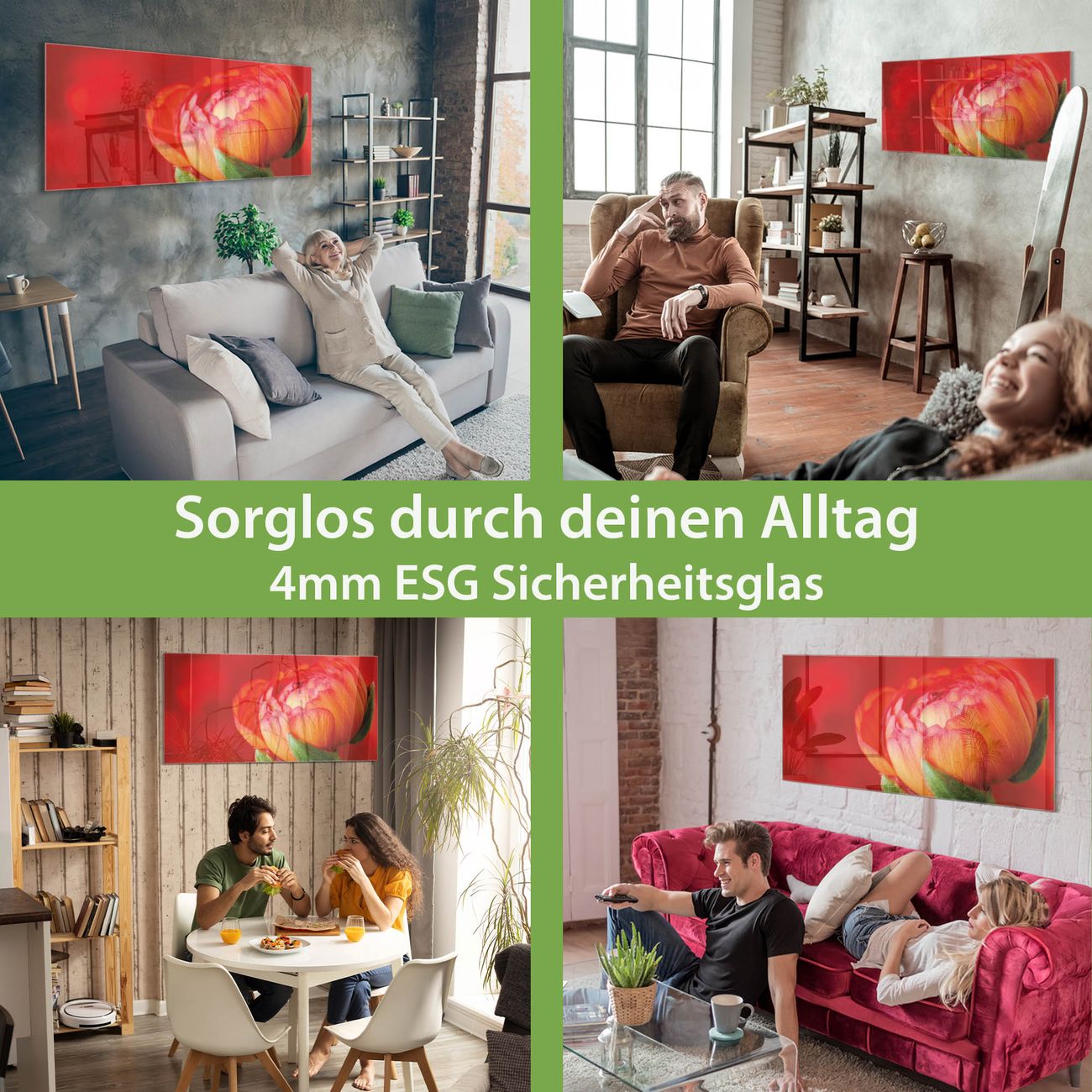- Material: 4mm Sicherheitsglas mit Metallrückwand