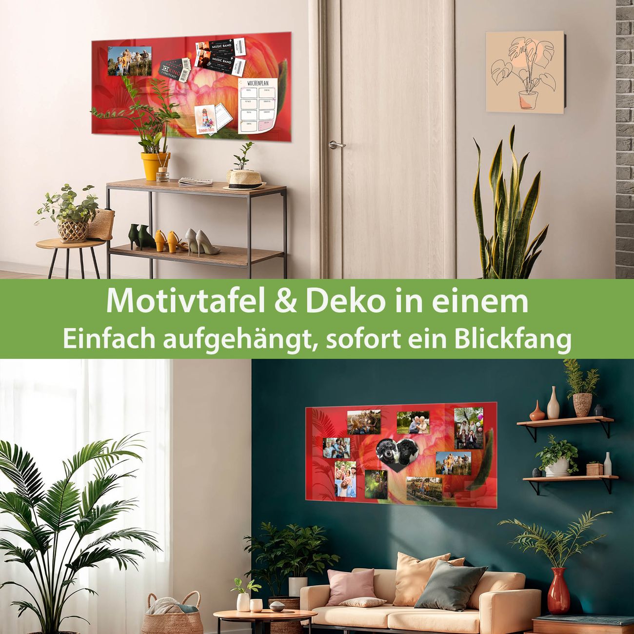 Dank der flachen Bauweise wirkt die Magnetwand fast schwebend an der Wand. Sie können sie mit Montagekleber elegant befestigen oder mit einem passenden Set klassisch verschrauben - beides sorgt für sicheren Halt und eine dezente Optik.