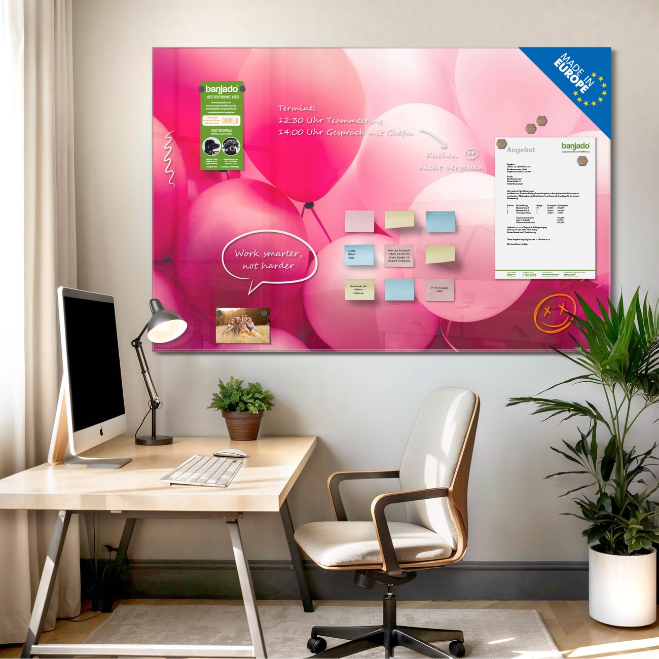 Glas Magnettafel im Querformat Motiv Rosa Ballons 2