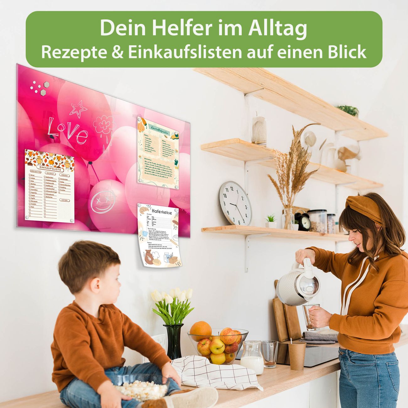 Ein Stück Design, das Ihren Alltag organisiert. Schreiben, heften, inspirieren - alles an einem Ort. Qualität, die man spürt. Montage leicht gemacht. Handwerk mit Herz - veredelt in Sachsen. Einzigartiges Design mit Motiv Motiv Rosa Ballons 2 Beschreibbare Glasoberfläche, leicht zu reinigen Starke Magnetkraft durch Stahlrückwand Inklusive 4 Neodym-Magneten Flexible Montageoptionen Handveredelt in Sachsen - Qualität, die bleibt