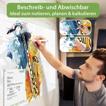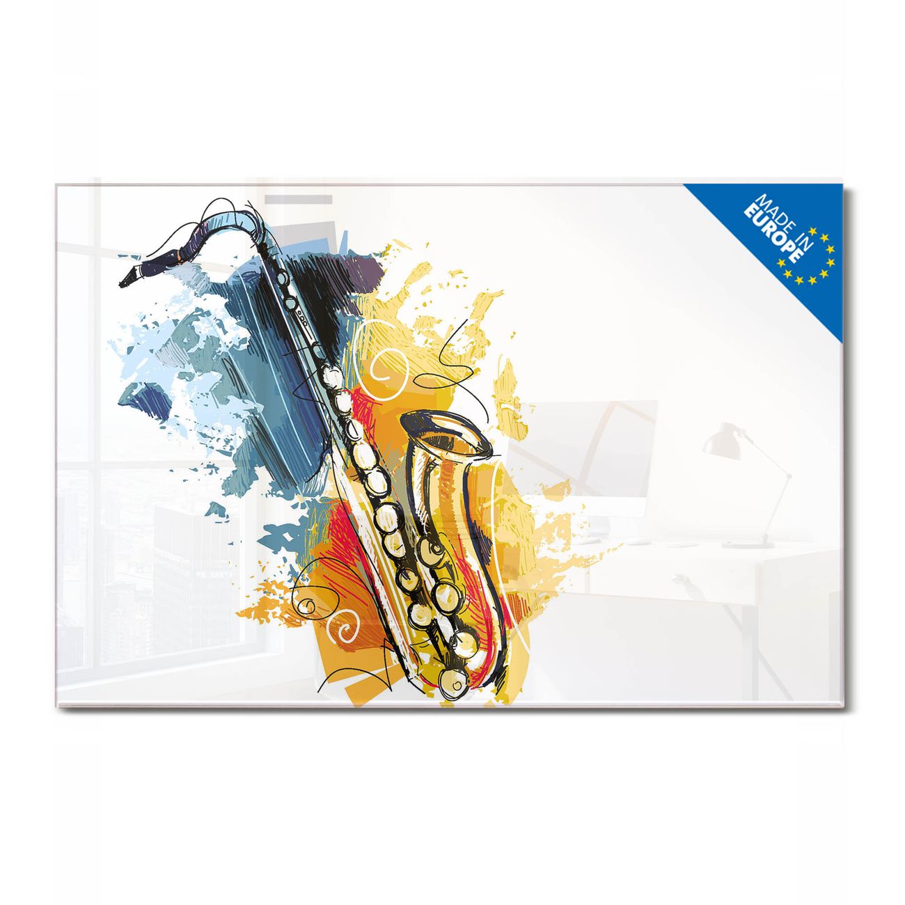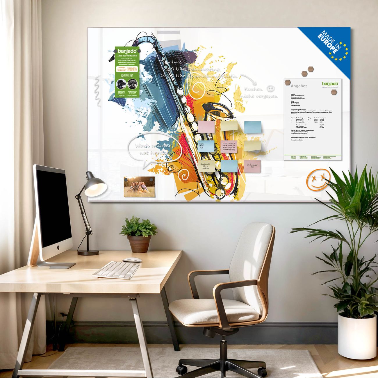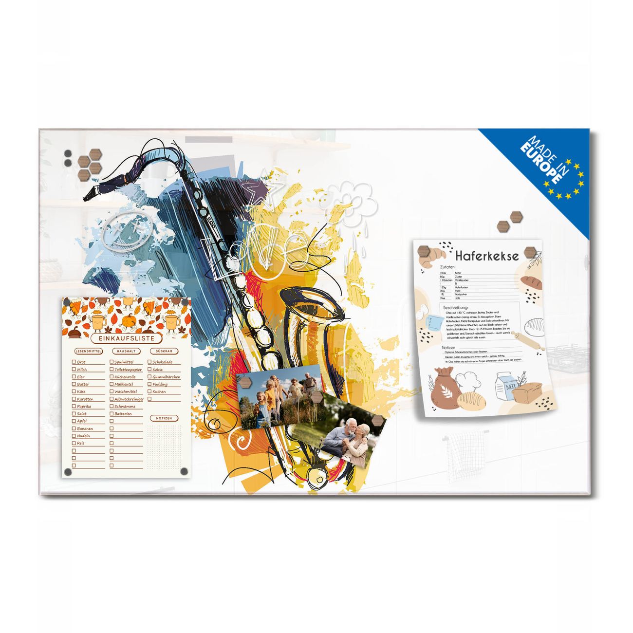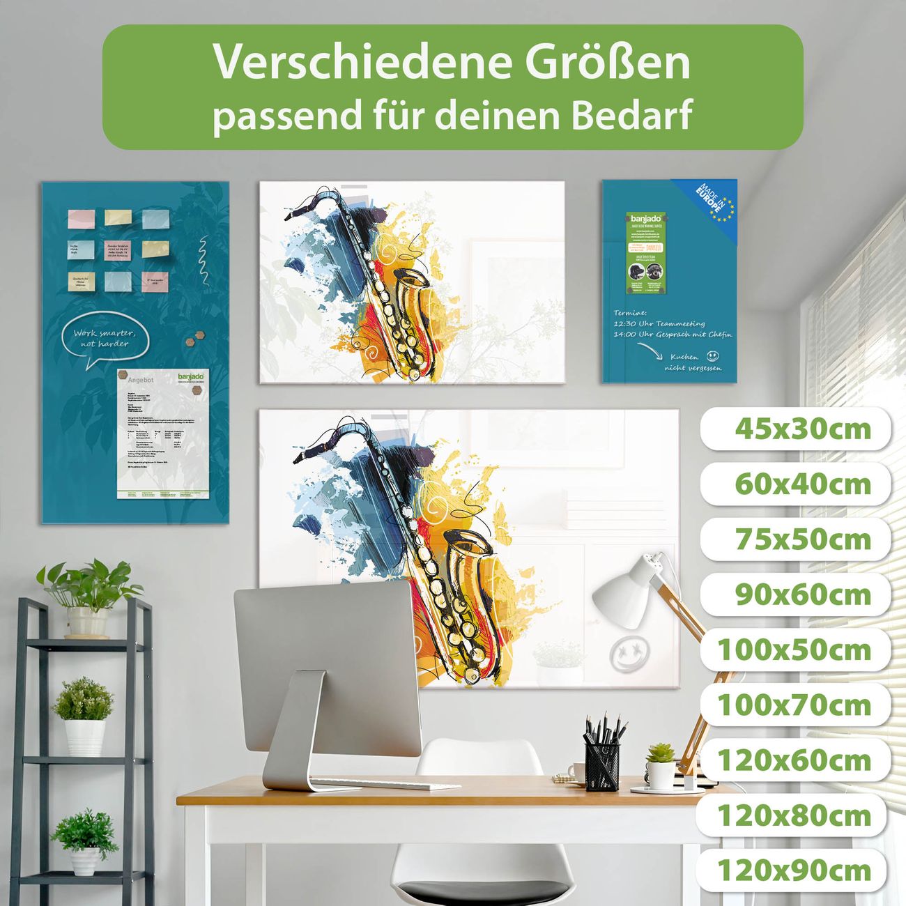 Die banjado Glas Magnettafel mit dem Motiv Motiv Saxophon verbindet Funktionalität mit Stil. Sie ersetzt das Zettelchaos durch klare Strukturen und bringt dabei eine warme, natürliche Atmosphäre in Ihr Zuhause. Ob im Büro, in der Küche oder im Eingangsbereich - dieses Design-Board zieht Blicke an und sorgt für Ordnung mit Charakter.