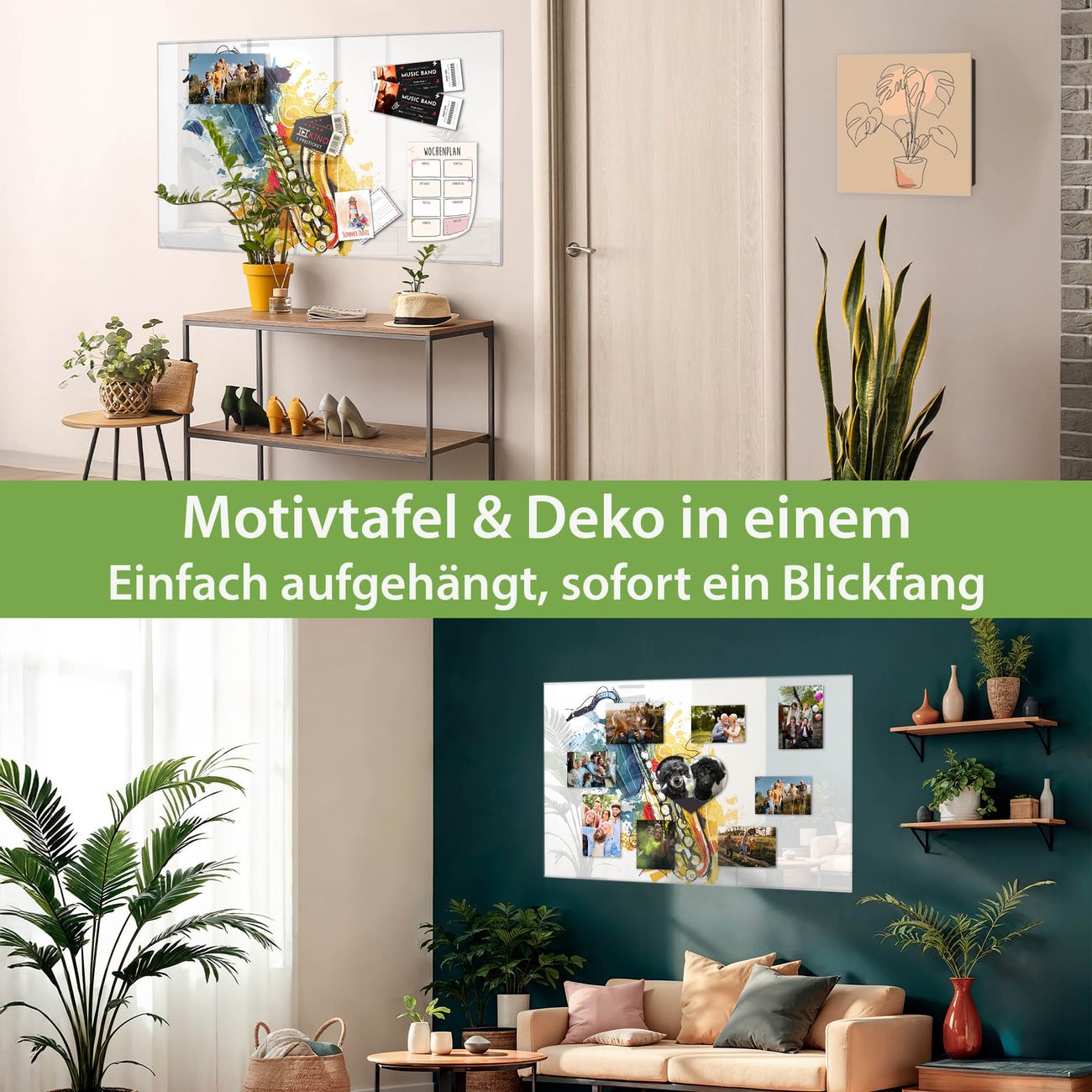 Auf der glatten Glasoberfläche lassen sich Termine, Rezepte oder Notizen ganz einfach mit Kreidestiften festhalten und rückstandslos entfernen. Starke Neodym-Magnete halten Ihre wichtigsten Erinnerungen sicher an Ort und Stelle. So entsteht Ihre ganz persönliche Ideenwand - jeden Tag neu.