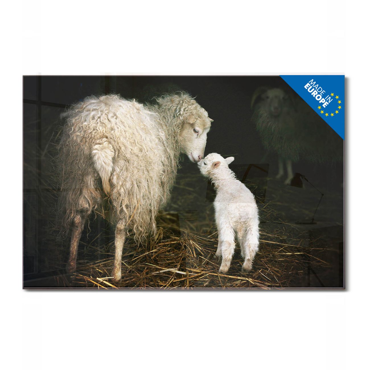 Glas Magnettafel im Querformat Motiv Schaf Und Lamm