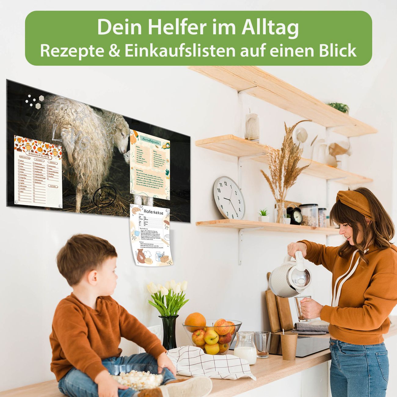 Ein Stück Design, das Ihren Alltag organisiert. Schreiben, heften, inspirieren - alles an einem Ort. Qualität, die man spürt. Montage leicht gemacht. Handwerk mit Herz - veredelt in Sachsen. Einzigartiges Design mit Motiv Motiv Schaf Und Lamm Beschreibbare Glasoberfläche, leicht zu reinigen Starke Magnetkraft durch Stahlrückwand Inklusive 4 Neodym-Magneten Flexible Montageoptionen Handveredelt in Sachsen - Qualität, die bleibt