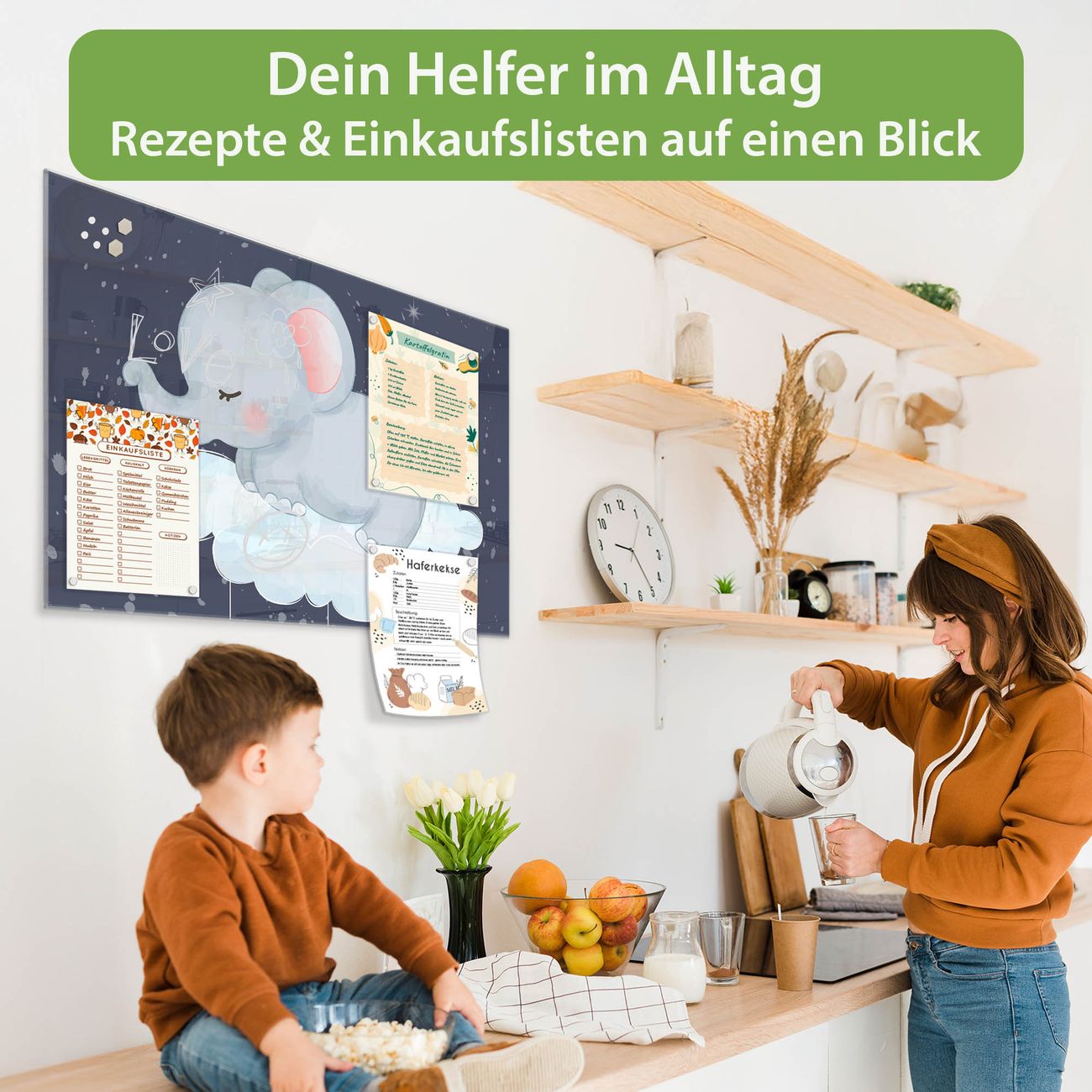 Auf der glatten Glasoberfläche lassen sich Termine, Rezepte oder Notizen ganz einfach mit Kreidestiften festhalten und rückstandslos entfernen. Starke Neodym-Magnete halten Ihre wichtigsten Erinnerungen sicher an Ort und Stelle. So entsteht Ihre ganz persönliche Ideenwand - jeden Tag neu.