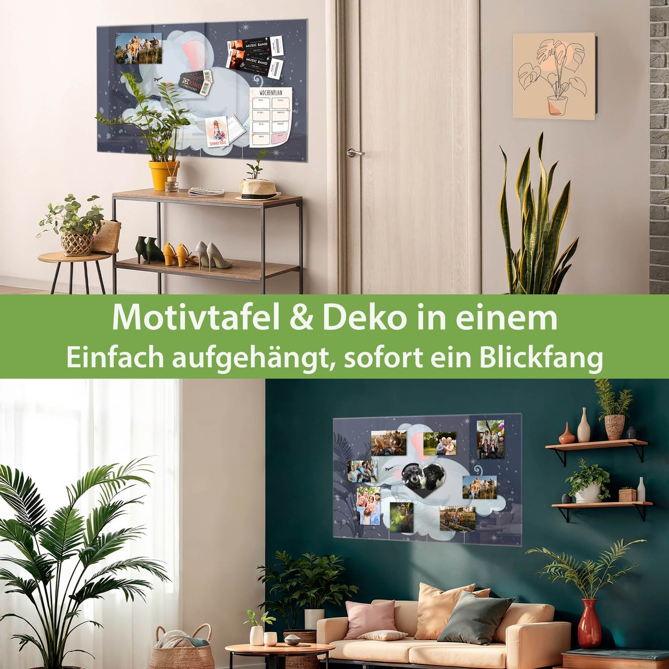 Dank der flachen Bauweise wirkt die Magnetwand fast schwebend an der Wand. Sie können sie mit Montagekleber elegant befestigen oder mit einem passenden Set klassisch verschrauben - beides sorgt für sicheren Halt und eine dezente Optik.
