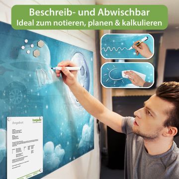 Auf der glatten Glasoberfläche lassen sich Termine, Rezepte oder Notizen ganz einfach mit Kreidestiften festhalten und rückstandslos entfernen. Starke Neodym-Magnete halten Ihre wichtigsten Erinnerungen sicher an Ort und Stelle. So entsteht Ihre ganz persönliche Ideenwand - jeden Tag neu.