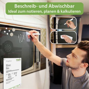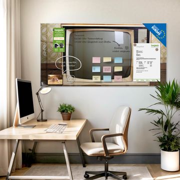 Auf der glatten Glasoberfläche lassen sich Termine, Rezepte oder Notizen ganz einfach mit Kreidestiften festhalten und rückstandslos entfernen. Starke Neodym-Magnete halten Ihre wichtigsten Erinnerungen sicher an Ort und Stelle. So entsteht Ihre ganz persönliche Ideenwand - jeden Tag neu.