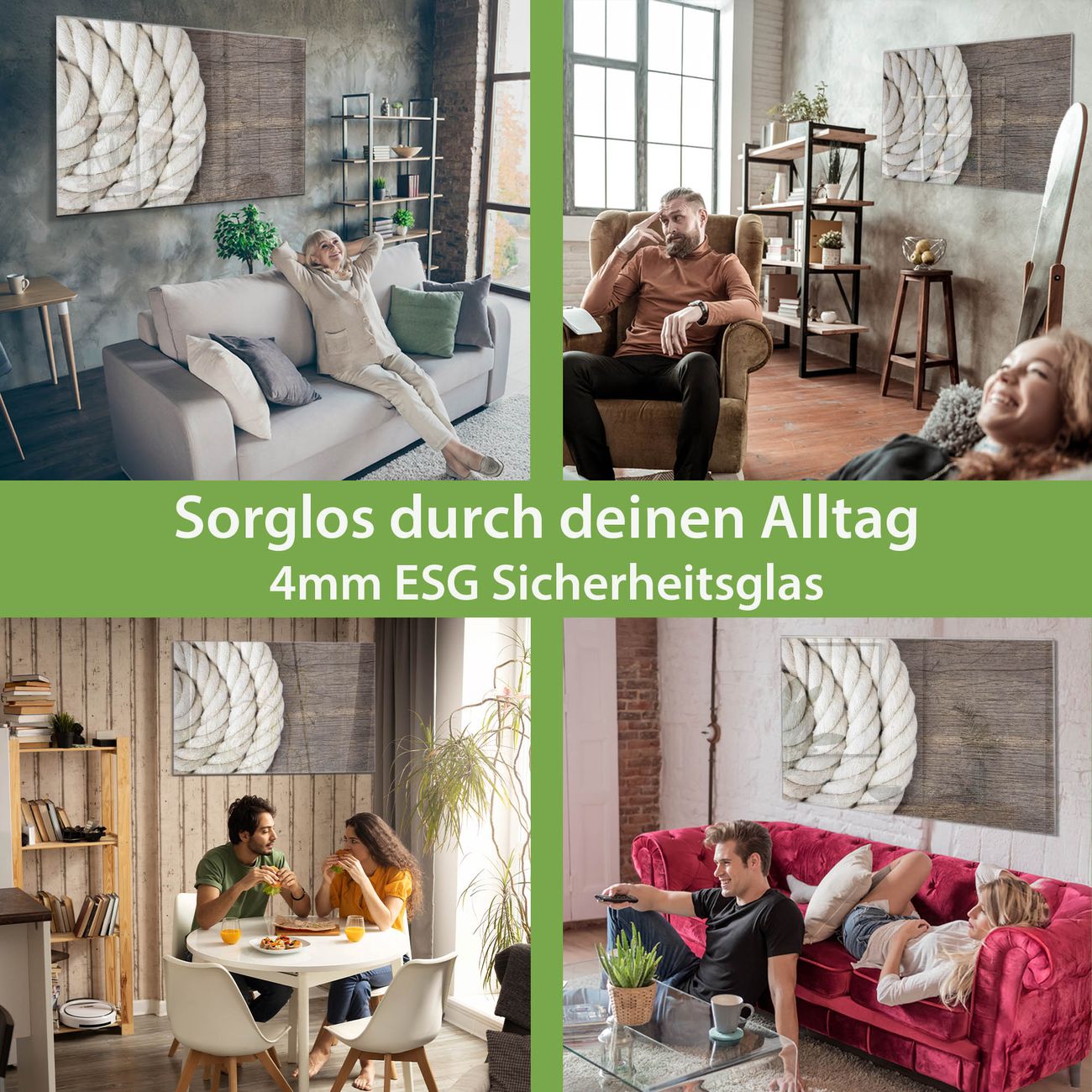 Glas Magnettafel im Querformat Motiv Seil