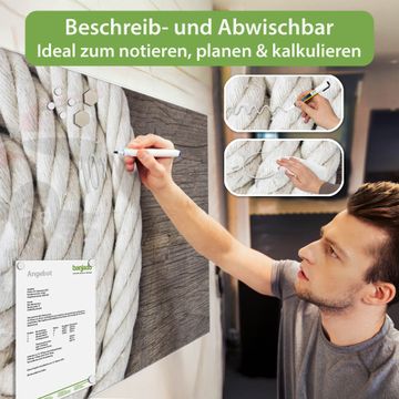 Die banjado Glas Magnettafel mit dem Motiv Motiv Seil verbindet Funktionalität mit Stil. Sie ersetzt das Zettelchaos durch klare Strukturen und bringt dabei eine warme, natürliche Atmosphäre in Ihr Zuhause. Ob im Büro, in der Küche oder im Eingangsbereich - dieses Design-Board zieht Blicke an und sorgt für Ordnung mit Charakter.