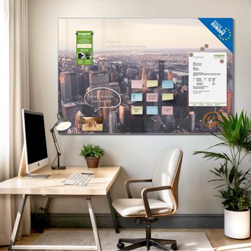 Die banjado Glas Magnettafel mit dem Motiv Motiv Skyline verbindet Funktionalität mit Stil. Sie ersetzt das Zettelchaos durch klare Strukturen und bringt dabei eine warme, natürliche Atmosphäre in Ihr Zuhause. Ob im Büro, in der Küche oder im Eingangsbereich - dieses Design-Board zieht Blicke an und sorgt für Ordnung mit Charakter.