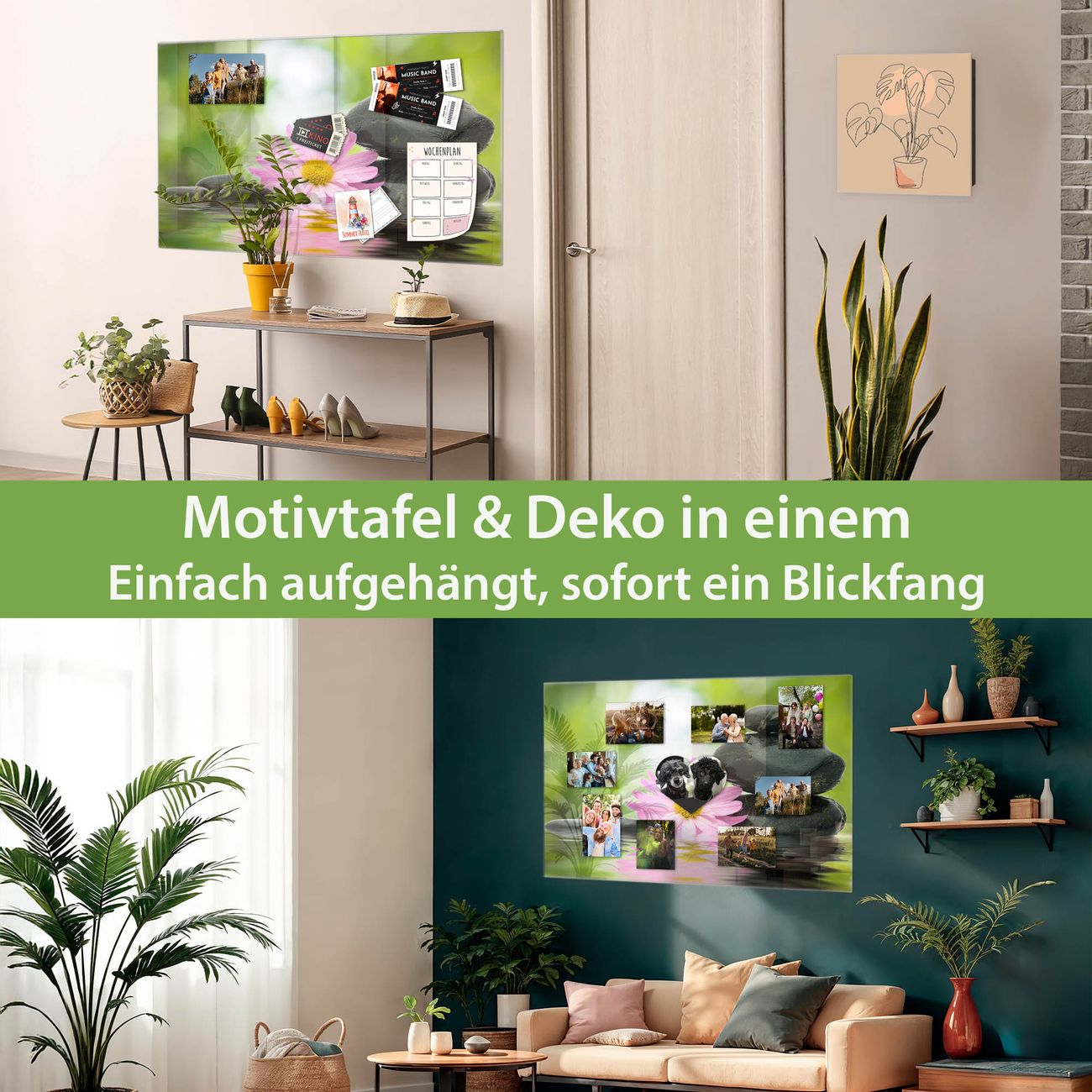 Die banjado Glas Magnettafel mit dem Motiv Motiv Steine & Relax 2 verbindet Funktionalität mit Stil. Sie ersetzt das Zettelchaos durch klare Strukturen und bringt dabei eine warme, natürliche Atmosphäre in Ihr Zuhause. Ob im Büro, in der Küche oder im Eingangsbereich - dieses Design-Board zieht Blicke an und sorgt für Ordnung mit Charakter.
