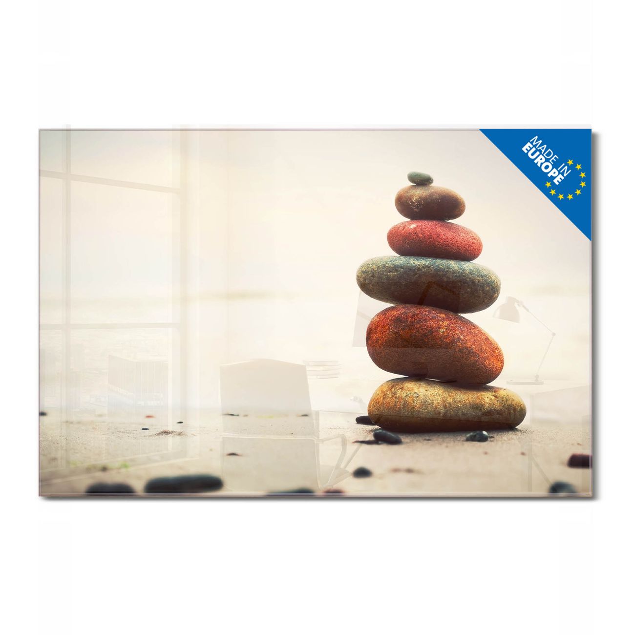 Glas Magnettafel im Querformat Motiv Steinmännchen