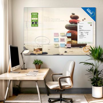 Die banjado Glas Magnettafel mit dem Motiv Motiv Steinmännchen verbindet Funktionalität mit Stil. Sie ersetzt das Zettelchaos durch klare Strukturen und bringt dabei eine warme, natürliche Atmosphäre in Ihr Zuhause. Ob im Büro, in der Küche oder im Eingangsbereich - dieses Design-Board zieht Blicke an und sorgt für Ordnung mit Charakter.