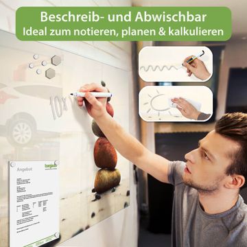 Jede Glas Magnettafel wird in unserer Werkstatt von Hand gefertigt und sorgfältig geprüft. So erhalten Sie ein echtes Qualitätsprodukt, das Funktion und Ästhetik perfekt vereint.?? Warum banjado?