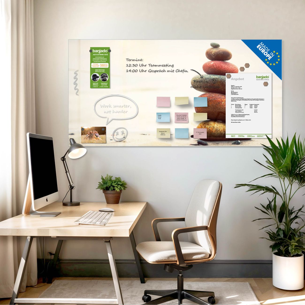 Jede Glas Magnettafel wird in unserer Werkstatt von Hand gefertigt und sorgfältig geprüft. So erhalten Sie ein echtes Qualitätsprodukt, das Funktion und Ästhetik perfekt vereint.?? Warum banjado?