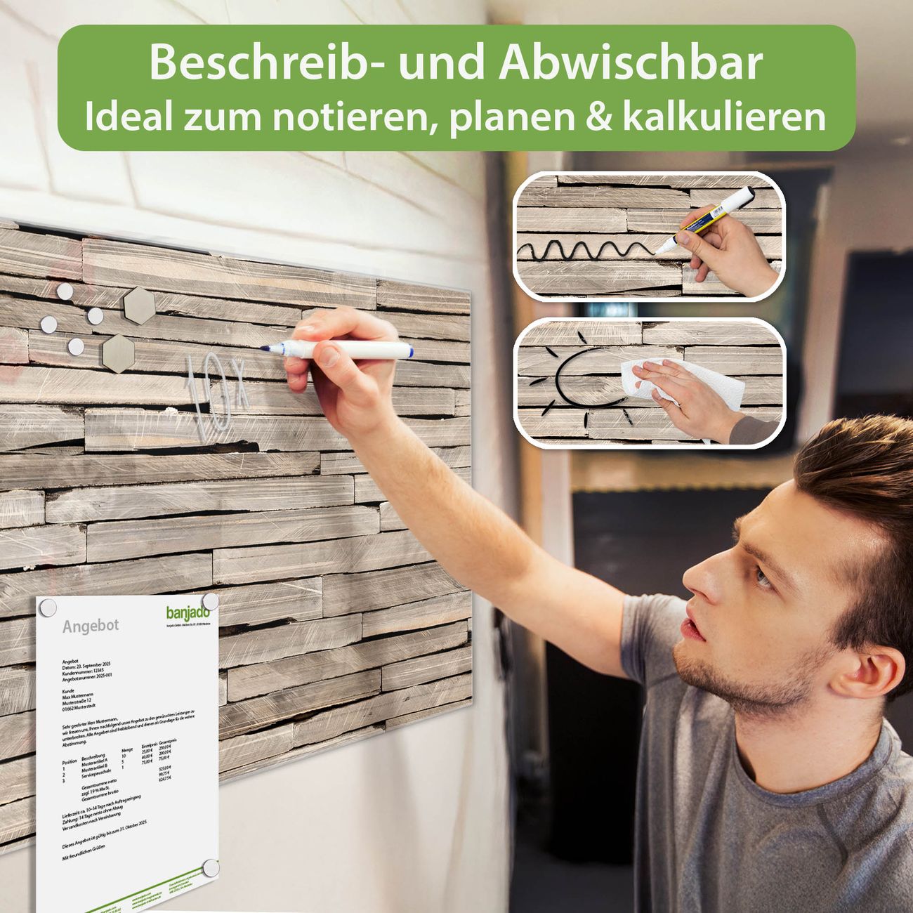 Bitte beachten Sie, dass ausschliessliche spezielle Magnete an der Glastafel haften. Wir empfehlen banjado Neodym Magnete, diese sind durch uns auf Wirksamkeit geprüft.
