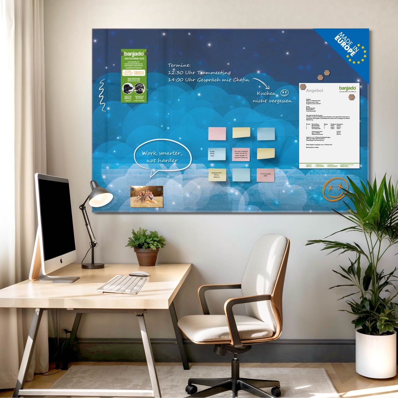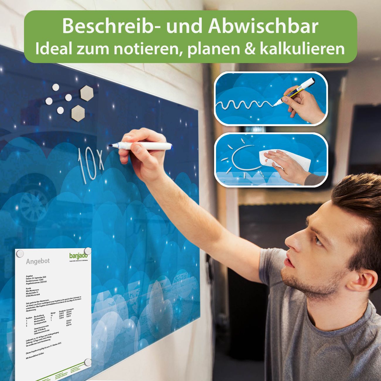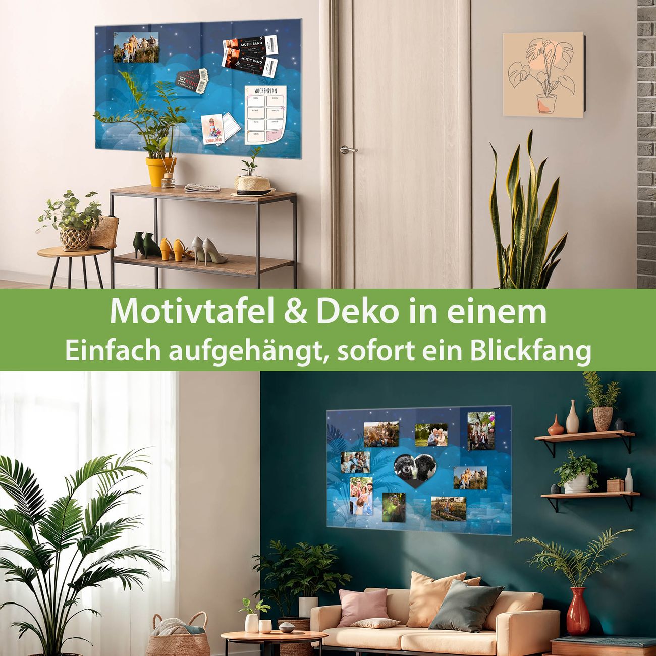 Die banjado Glas Magnettafel mit dem Motiv Motiv Sternenhimmel 2 verbindet Funktionalität mit Stil. Sie ersetzt das Zettelchaos durch klare Strukturen und bringt dabei eine warme, natürliche Atmosphäre in Ihr Zuhause. Ob im Büro, in der Küche oder im Eingangsbereich - dieses Design-Board zieht Blicke an und sorgt für Ordnung mit Charakter.