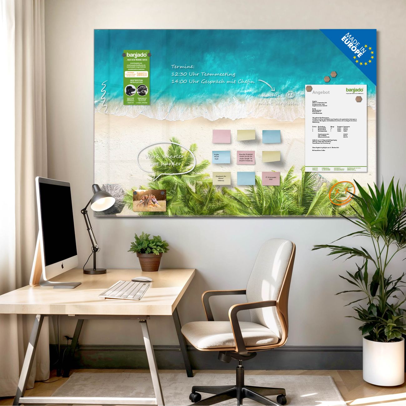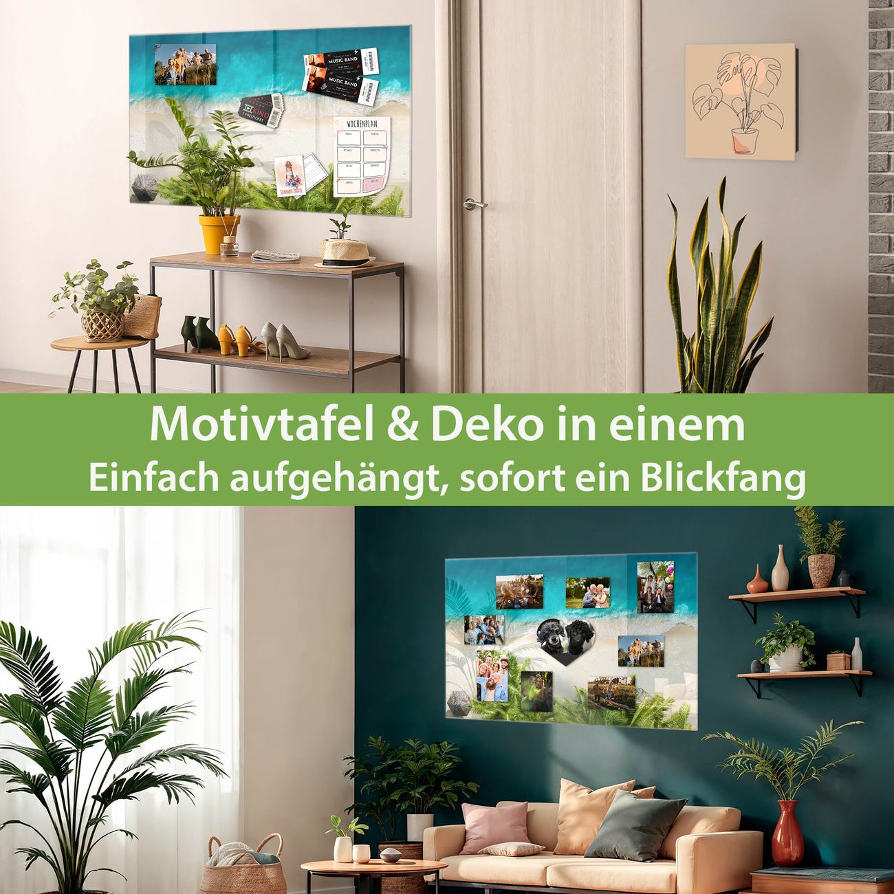 Die banjado Glas Magnettafel mit dem Motiv Motiv Strandtag verbindet Funktionalität mit Stil. Sie ersetzt das Zettelchaos durch klare Strukturen und bringt dabei eine warme, natürliche Atmosphäre in Ihr Zuhause. Ob im Büro, in der Küche oder im Eingangsbereich - dieses Design-Board zieht Blicke an und sorgt für Ordnung mit Charakter.