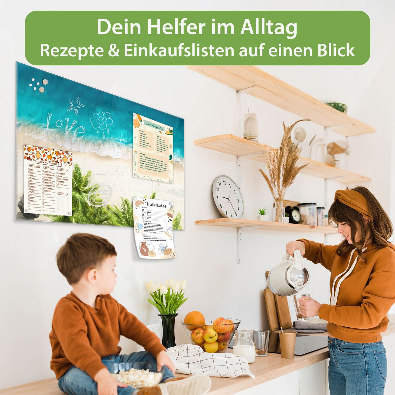 Ein Stück Design, das Ihren Alltag organisiert. Schreiben, heften, inspirieren - alles an einem Ort. Qualität, die man spürt. Montage leicht gemacht. Handwerk mit Herz - veredelt in Sachsen. Einzigartiges Design mit Motiv Motiv Strandtag Beschreibbare Glasoberfläche, leicht zu reinigen Starke Magnetkraft durch Stahlrückwand Inklusive 4 Neodym-Magneten Flexible Montageoptionen Handveredelt in Sachsen - Qualität, die bleibt
