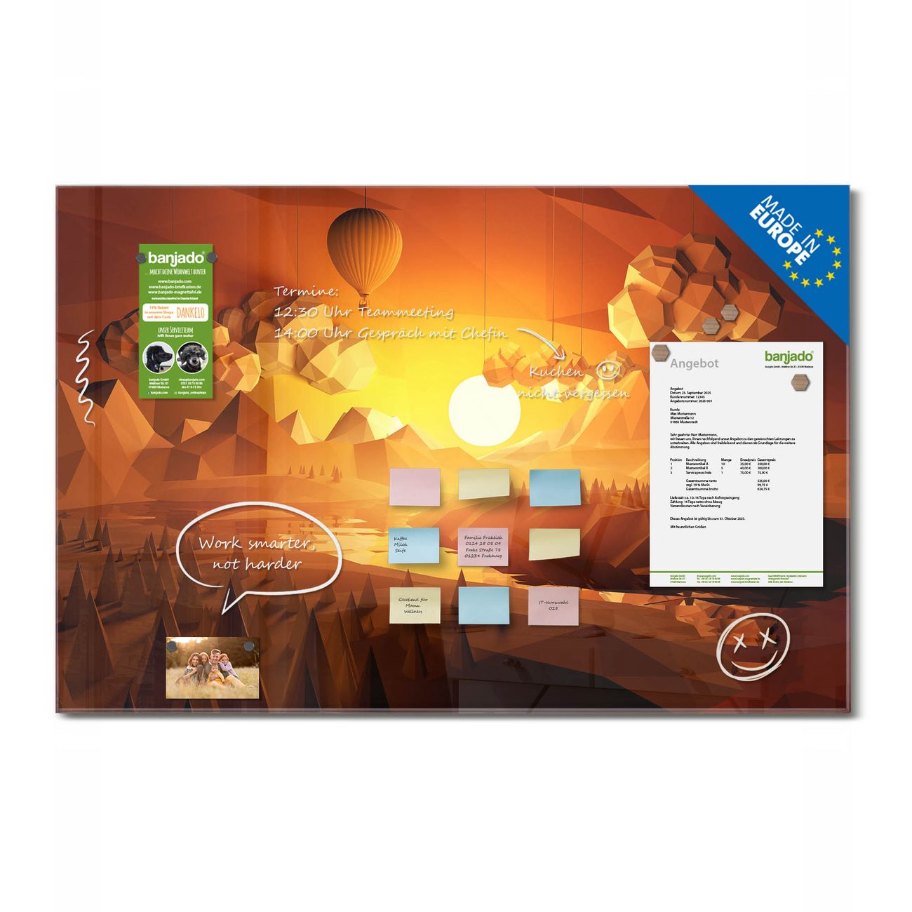 Die banjado Glas Magnettafel mit dem Motiv Motiv Sunset verbindet Funktionalität mit Stil. Sie ersetzt das Zettelchaos durch klare Strukturen und bringt dabei eine warme, natürliche Atmosphäre in Ihr Zuhause. Ob im Büro, in der Küche oder im Eingangsbereich - dieses Design-Board zieht Blicke an und sorgt für Ordnung mit Charakter.