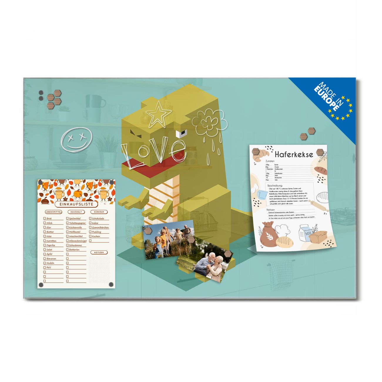 Glas Magnettafel im Querformat Motiv T-Rex Block