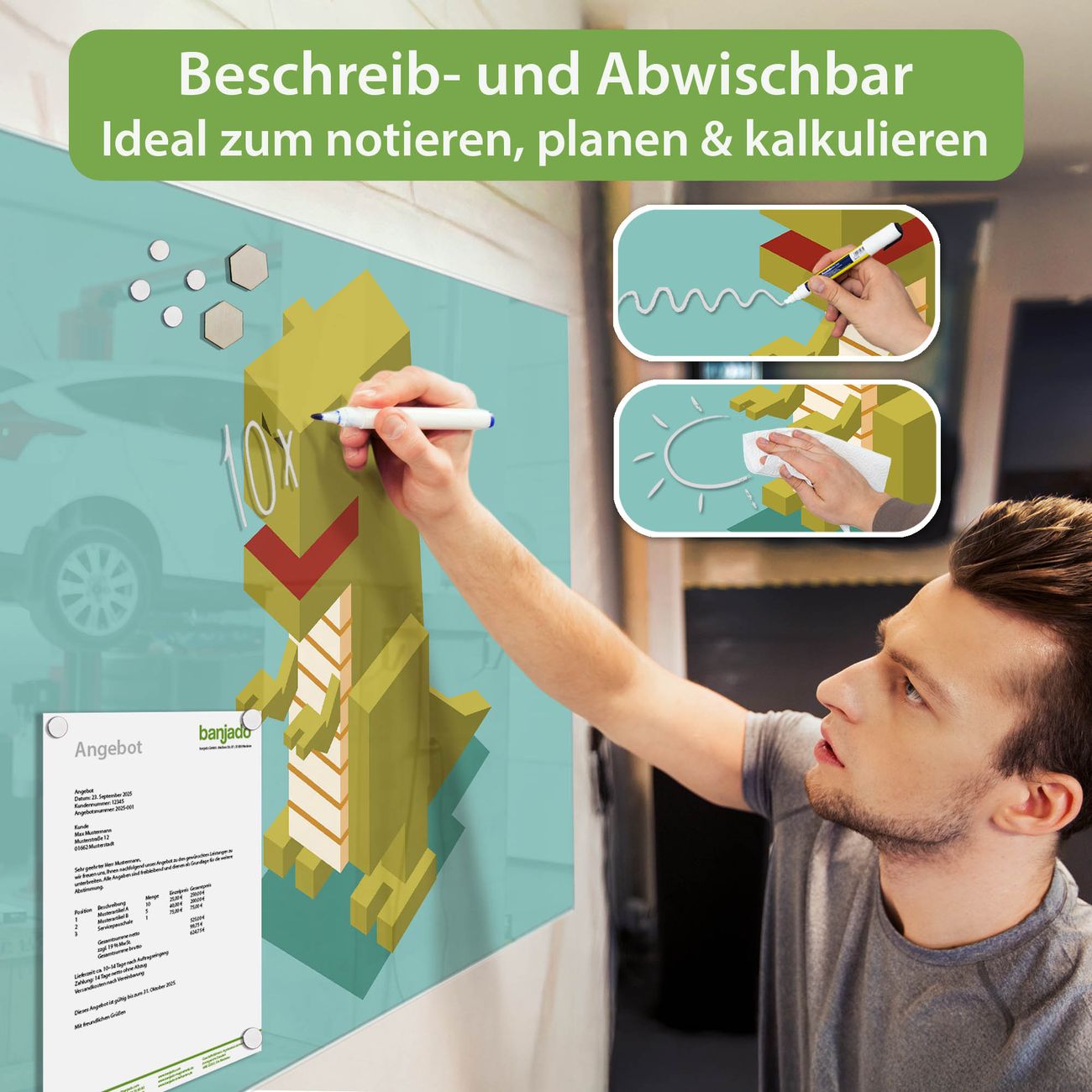 Jede Glas Magnettafel wird in unserer Werkstatt von Hand gefertigt und sorgfältig geprüft. So erhalten Sie ein echtes Qualitätsprodukt, das Funktion und Ästhetik perfekt vereint.?? Warum banjado?