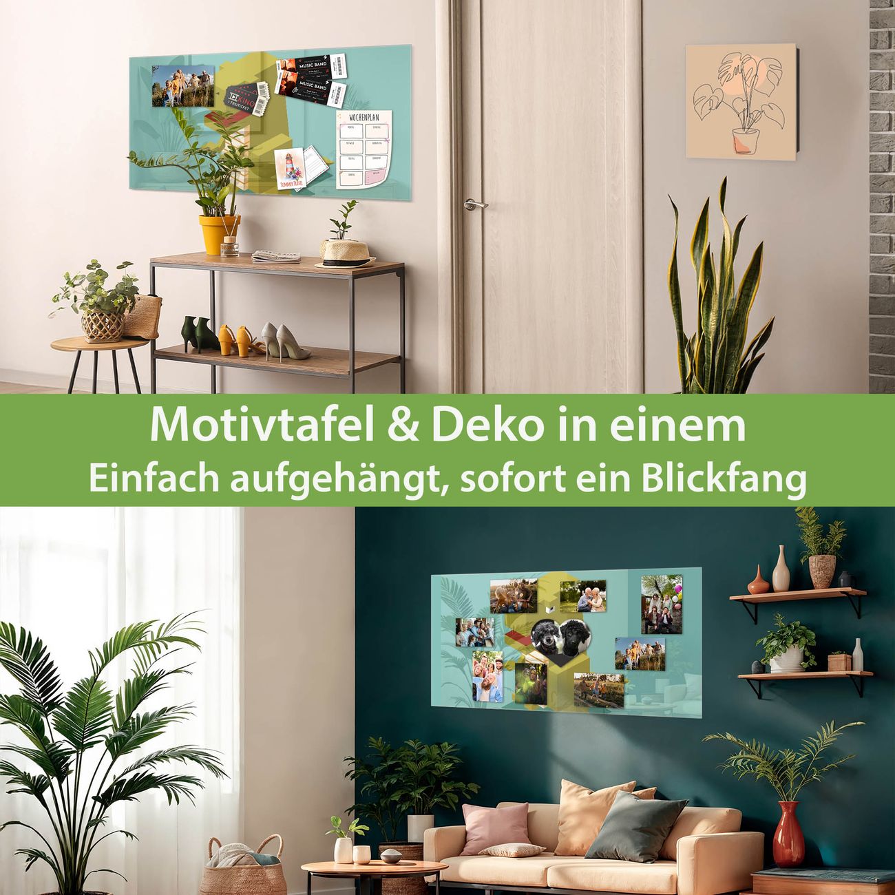 Dank der flachen Bauweise wirkt die Magnetwand fast schwebend an der Wand. Sie können sie mit Montagekleber elegant befestigen oder mit einem passenden Set klassisch verschrauben - beides sorgt für sicheren Halt und eine dezente Optik.