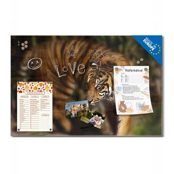 Die banjado Glas Magnettafel mit dem Motiv Motiv Tiger verbindet Funktionalität mit Stil. Sie ersetzt das Zettelchaos durch klare Strukturen und bringt dabei eine warme, natürliche Atmosphäre in Ihr Zuhause. Ob im Büro, in der Küche oder im Eingangsbereich - dieses Design-Board zieht Blicke an und sorgt für Ordnung mit Charakter.