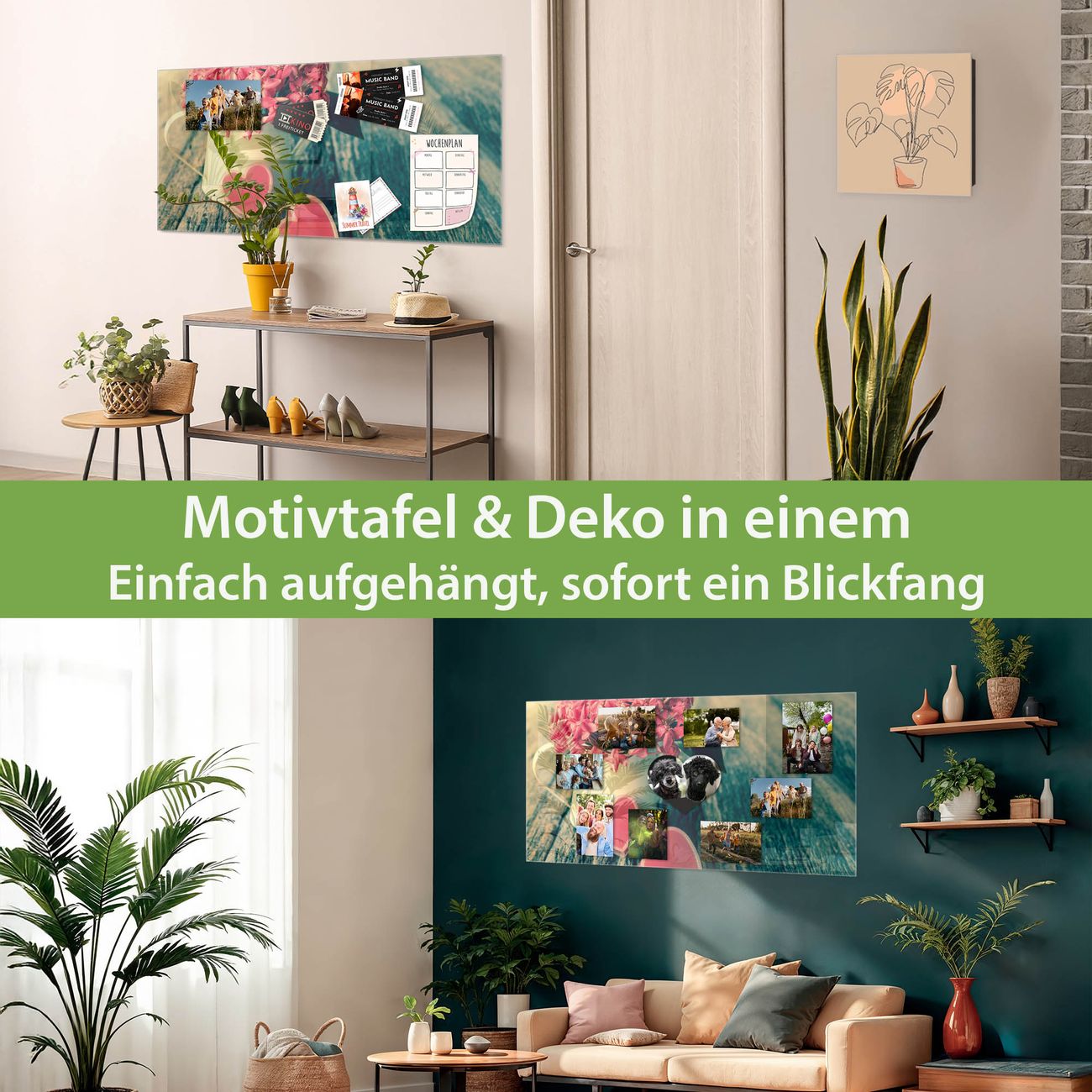 Dank der flachen Bauweise wirkt die Magnetwand fast schwebend an der Wand. Sie können sie mit Montagekleber elegant befestigen oder mit einem passenden Set klassisch verschrauben - beides sorgt für sicheren Halt und eine dezente Optik.