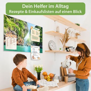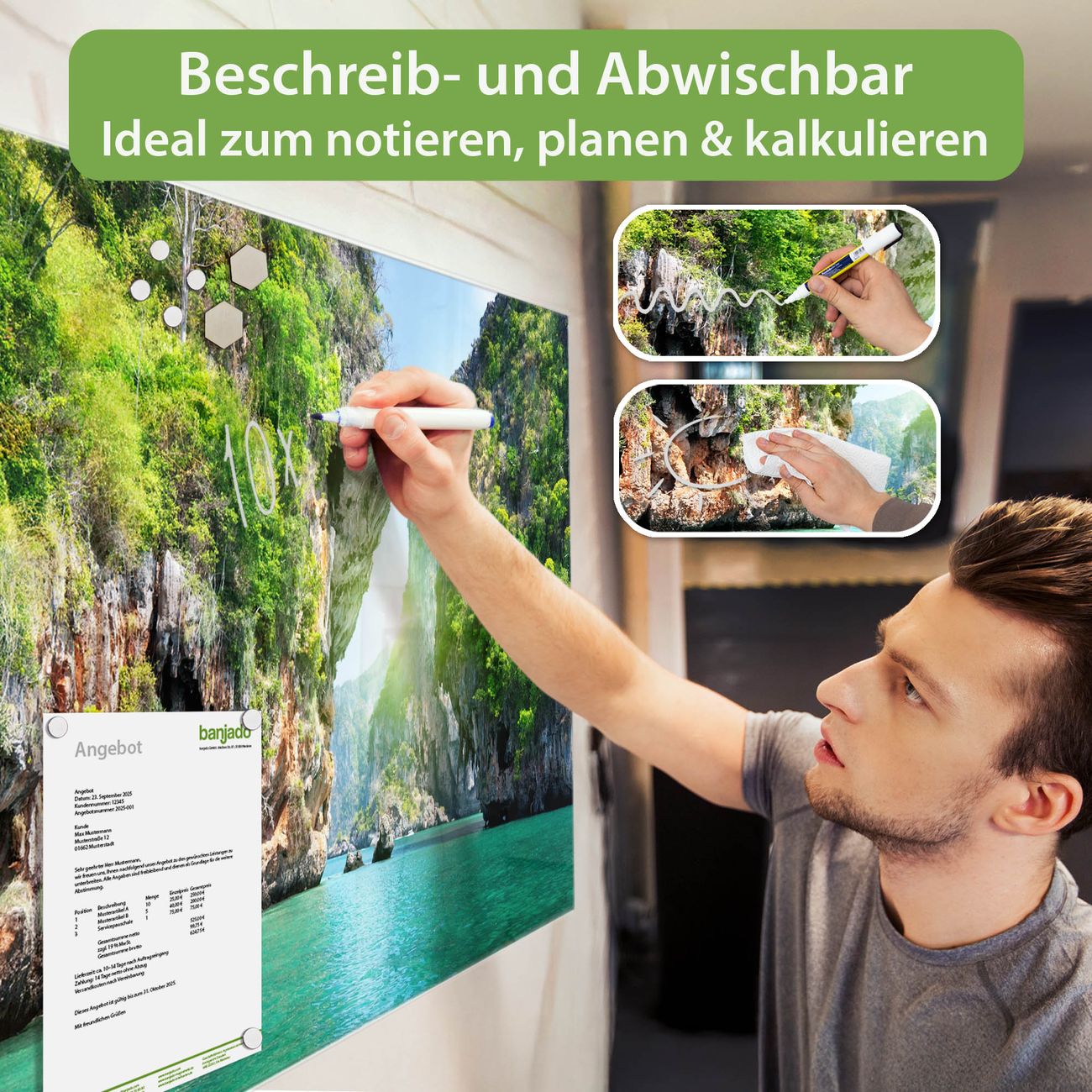 Die banjado Glas Magnettafel mit dem Motiv Motiv Versteckte Bucht verbindet Funktionalität mit Stil. Sie ersetzt das Zettelchaos durch klare Strukturen und bringt dabei eine warme, natürliche Atmosphäre in Ihr Zuhause. Ob im Büro, in der Küche oder im Eingangsbereich - dieses Design-Board zieht Blicke an und sorgt für Ordnung mit Charakter.