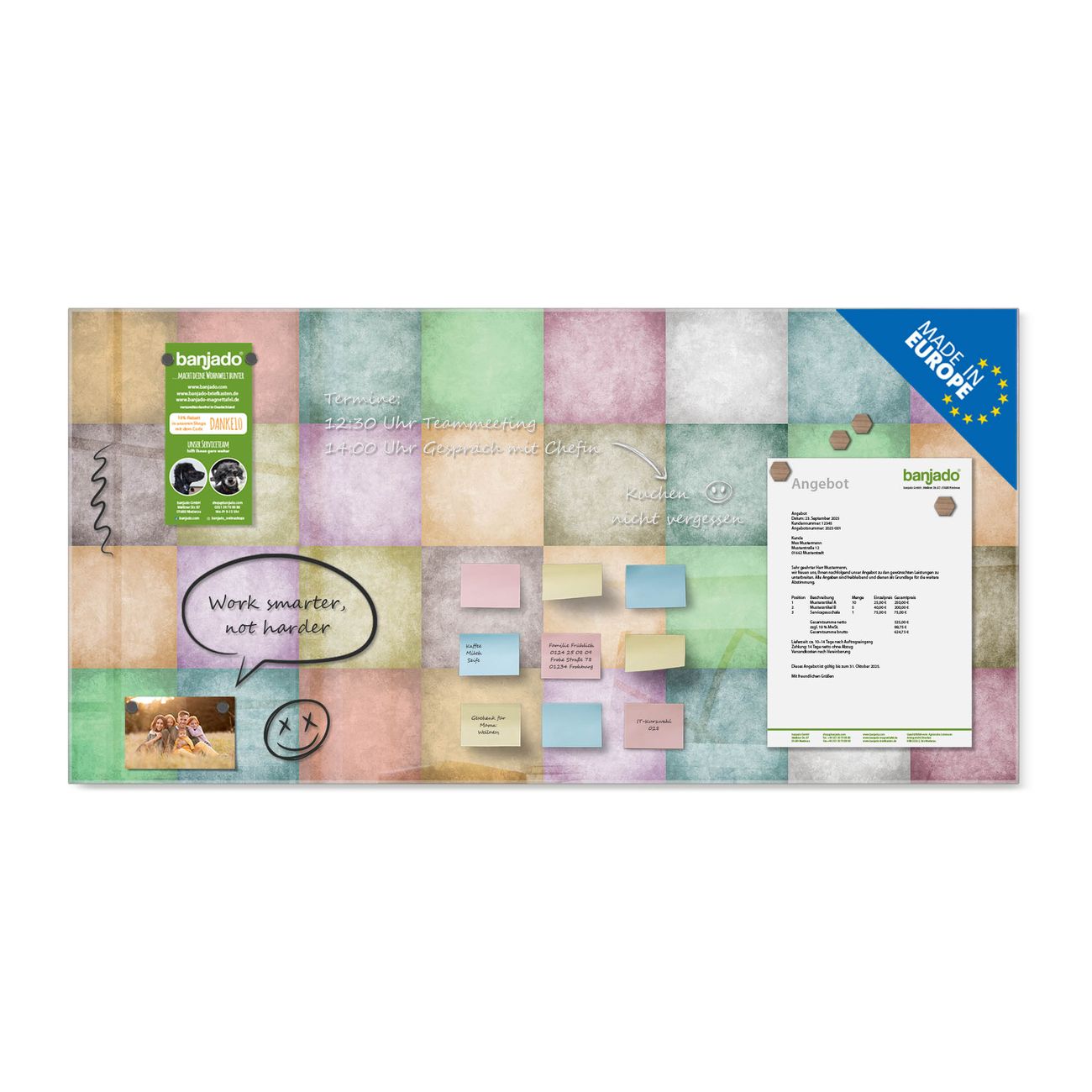 Glas Magnettafel im Querformat Motiv Verwaschene Quadrate