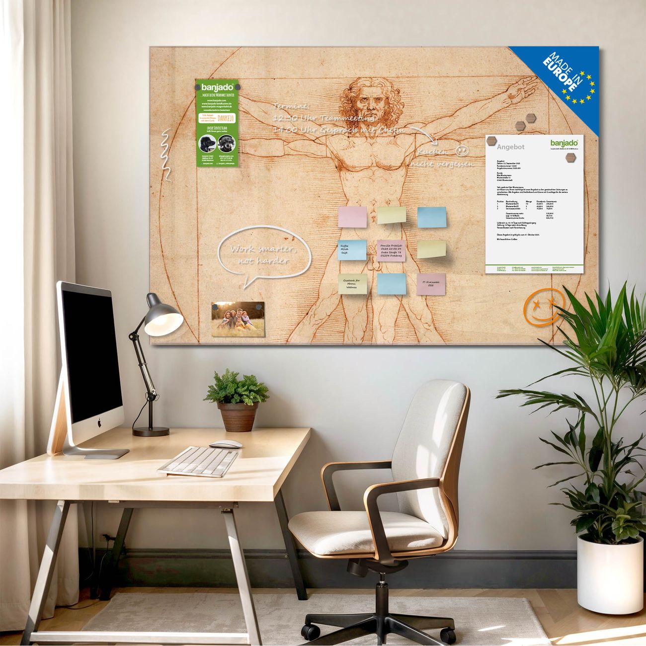 Glas Magnettafel im Querformat Motiv Vitruvianische Figur
