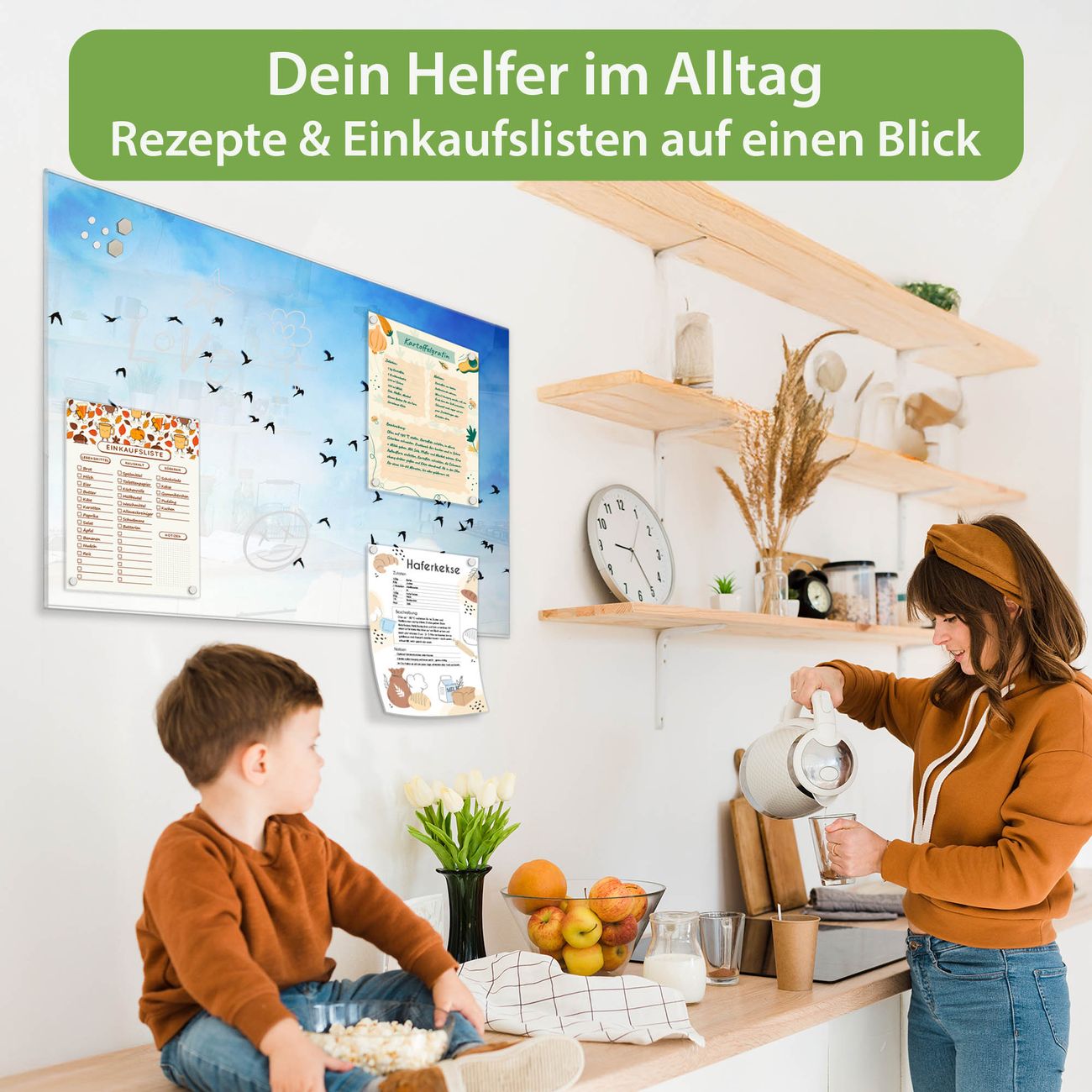 Ein Stück Design, das Ihren Alltag organisiert. Schreiben, heften, inspirieren - alles an einem Ort. Qualität, die man spürt. Montage leicht gemacht. Handwerk mit Herz - veredelt in Sachsen. Einzigartiges Design mit Motiv Motiv Vögel am Himmel 2 Beschreibbare Glasoberfläche, leicht zu reinigen Starke Magnetkraft durch Stahlrückwand Inklusive 4 Neodym-Magneten Flexible Montageoptionen Handveredelt in Sachsen - Qualität, die bleibt