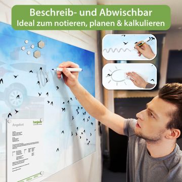 Die banjado Glas Magnettafel mit dem Motiv Motiv Vögel am Himmel 2 verbindet Funktionalität mit Stil. Sie ersetzt das Zettelchaos durch klare Strukturen und bringt dabei eine warme, natürliche Atmosphäre in Ihr Zuhause. Ob im Büro, in der Küche oder im Eingangsbereich - dieses Design-Board zieht Blicke an und sorgt für Ordnung mit Charakter.
