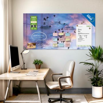 Die banjado Glas Magnettafel mit dem Motiv Motiv Vögel am Himmel 3 verbindet Funktionalität mit Stil. Sie ersetzt das Zettelchaos durch klare Strukturen und bringt dabei eine warme, natürliche Atmosphäre in Ihr Zuhause. Ob im Büro, in der Küche oder im Eingangsbereich - dieses Design-Board zieht Blicke an und sorgt für Ordnung mit Charakter.