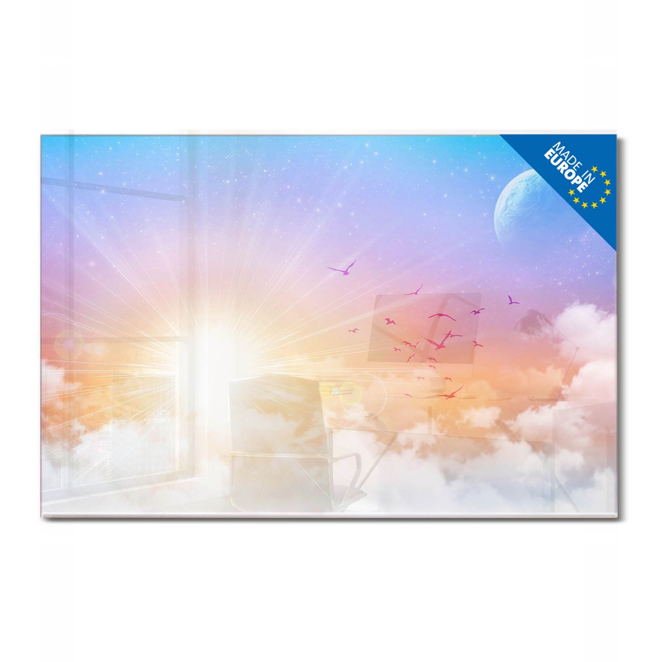 Glas Magnettafel im Querformat Motiv Vögel am Himmel