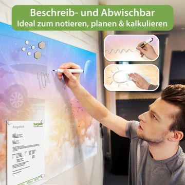 Auf der glatten Glasoberfläche lassen sich Termine, Rezepte oder Notizen ganz einfach mit Kreidestiften festhalten und rückstandslos entfernen. Starke Neodym-Magnete halten Ihre wichtigsten Erinnerungen sicher an Ort und Stelle. So entsteht Ihre ganz persönliche Ideenwand - jeden Tag neu.