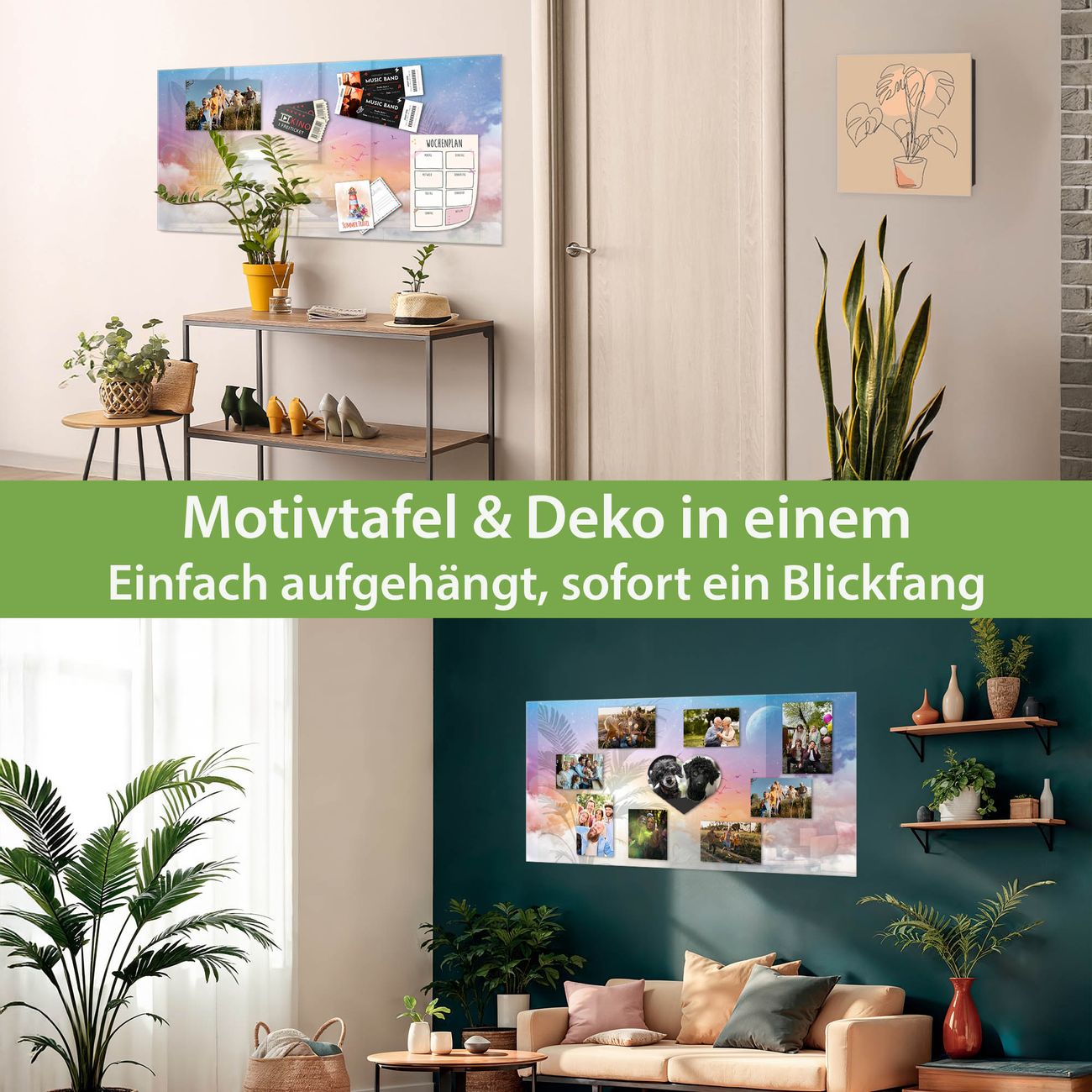 Dank der flachen Bauweise wirkt die Magnetwand fast schwebend an der Wand. Sie können sie mit Montagekleber elegant befestigen oder mit einem passenden Set klassisch verschrauben - beides sorgt für sicheren Halt und eine dezente Optik.