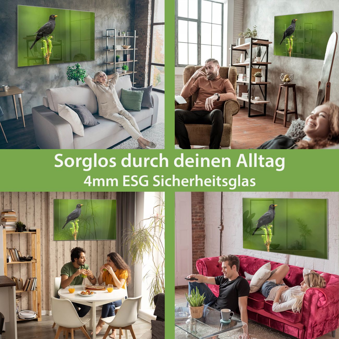 - Material: 4mm Sicherheitsglas mit Metallrückwand
